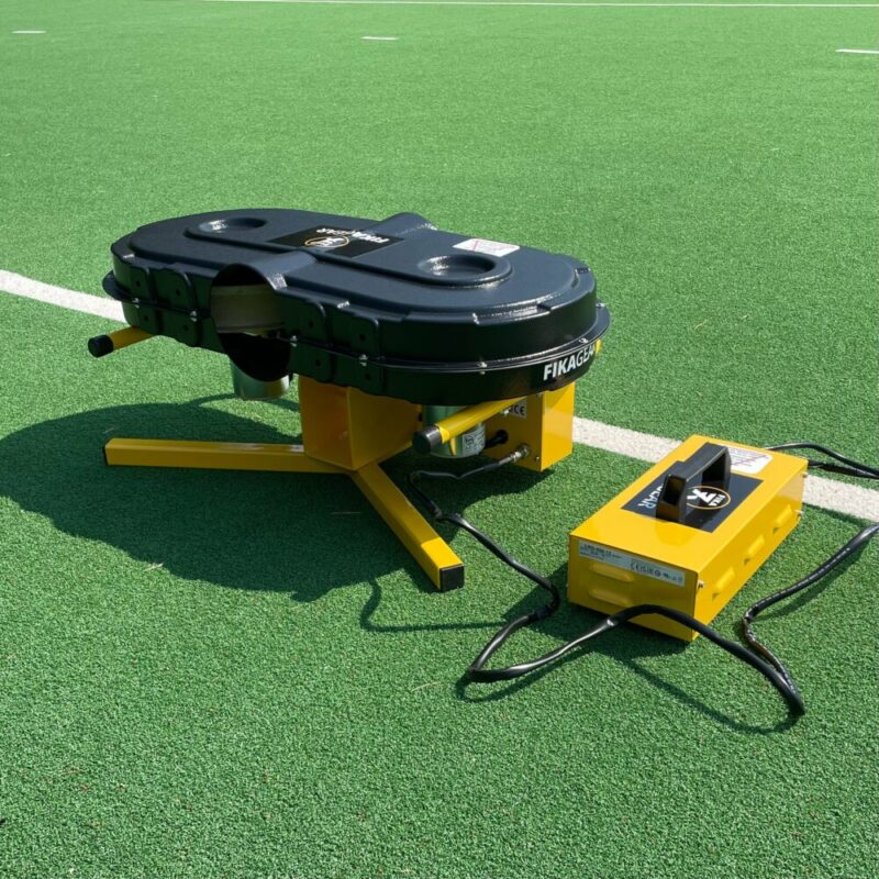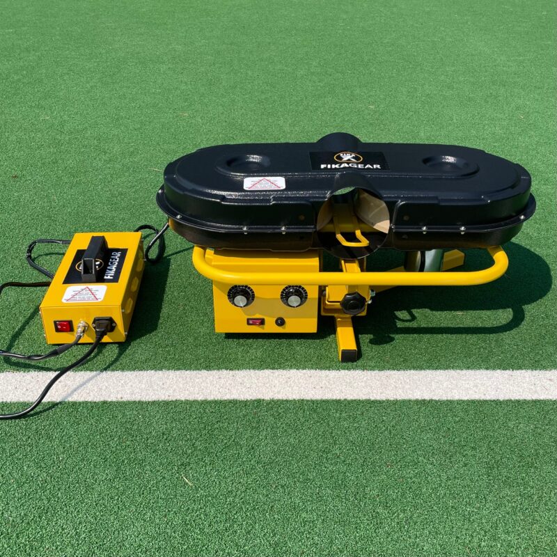 Het FIKAGEAR ballenkanon heeft een traploze instelbare snelheidsregeling voor zowel voor de linker als rechter draaischijf. Op maximum toeren krijgt de bal een snelheid van circa 140km/h. Met de standaard meegeleverde 220V voedingsunit kun je onbeperkt met de het ballenkanon trainen. Het balkenkanon kan ook met een 12volt batterij worden gebruikt.